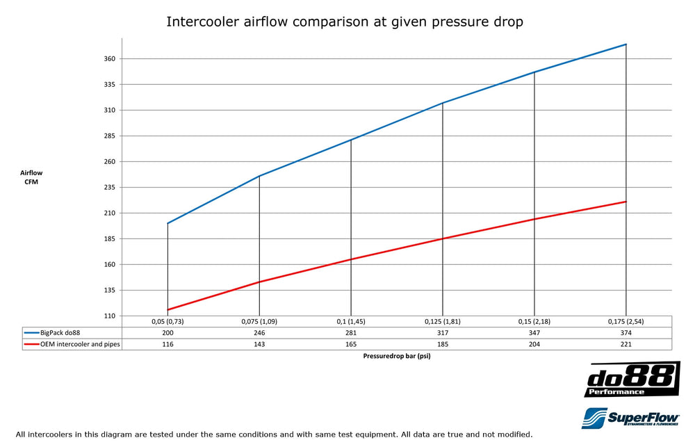 Ten zestaw jest przeznaczony dla osób, które chcą osiągnąć wysoką moc i oczekują maksymalnej wydajności. Sama wymiana intercoolera na wersję do88 to duży krok naprzód, ale dopiero połączenie z zestawem rur ciśnieniowych daje ogromną poprawę przepływu powietrza i wydajności chłodzenia.