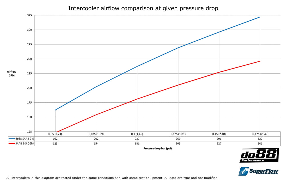 - Przepływ powietrza przy spadku ciśnienia 0,15 bar: 296 CFM (do88) vs 227 CFM (OEM) – do88 o 30% wyższy przepływ!